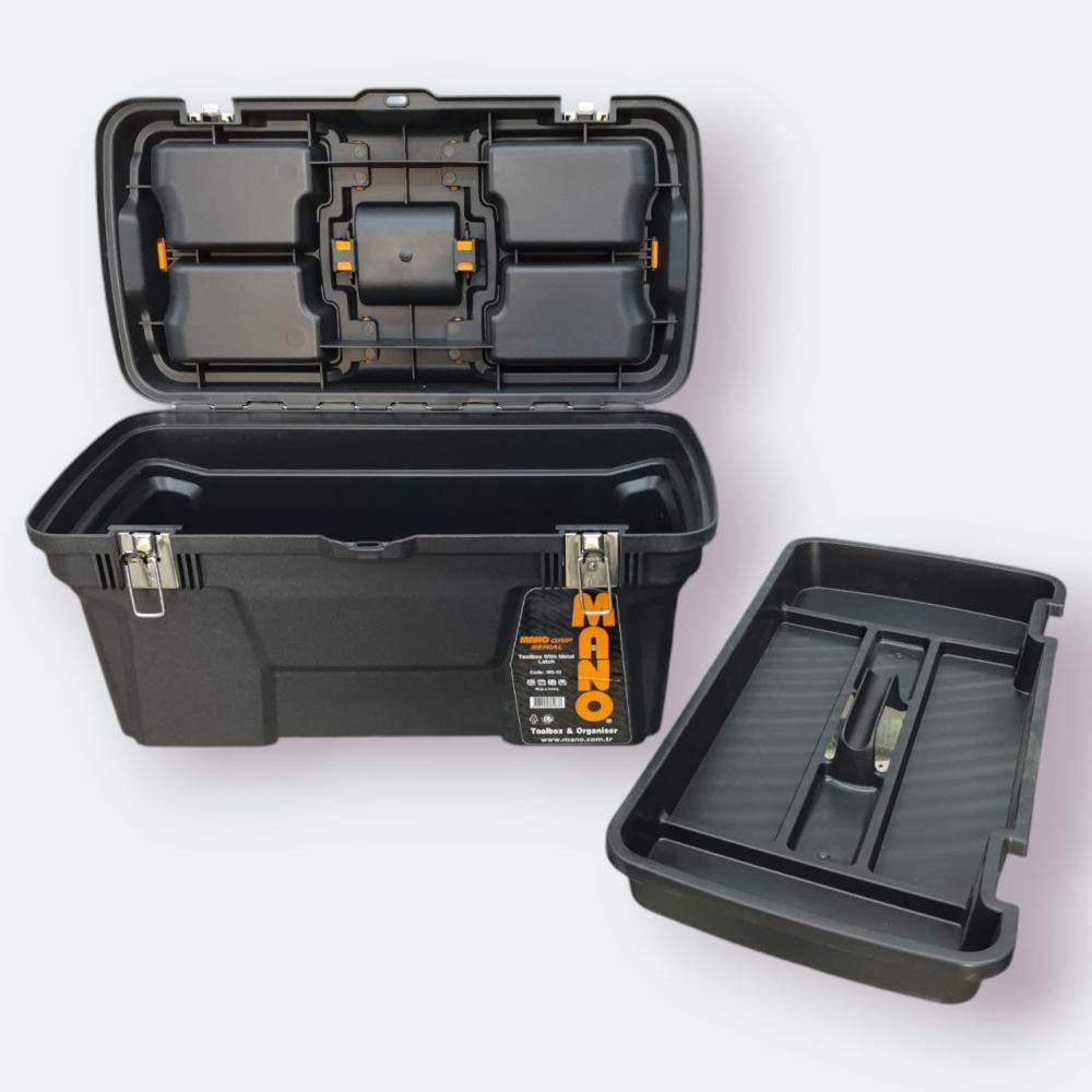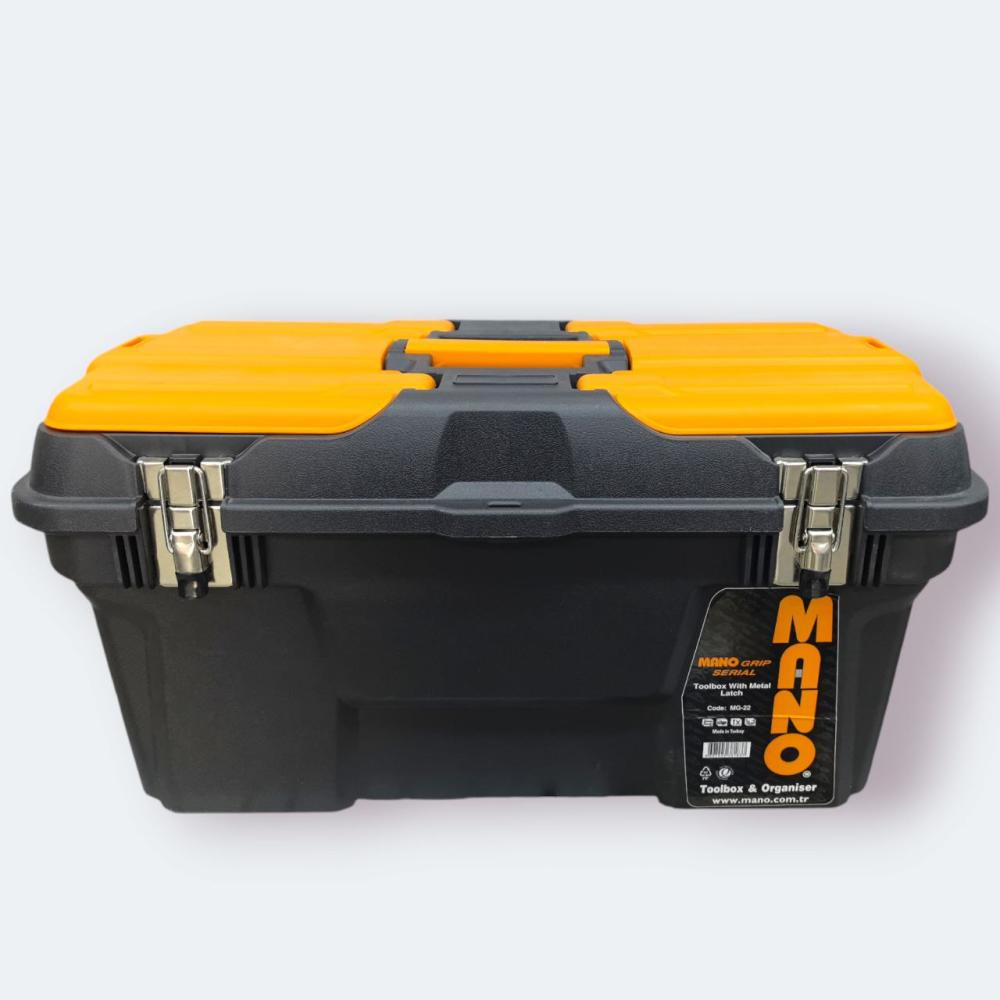 الوصف: صندوق العدة من ماركة "MANO" التركي يتميز بتصميم عملي ومتين، وهو مصنوع من مواد بلاستيكية عالية الجودة لضمان التحمل والصلابة. يحتوي الصندوق على قفل معدني قوي يمنح أماناً إضافياً لحفظ أدواتك. مزود بدرجين تخزين في الجزء العلوي لسهولة الوصول للأدوات الصغيرة والمستلزمات الإضافية، بالإضافة إلى رف داخلي قابل للإزالة يساعدك في تنظيم العدة بشكل أفضل.